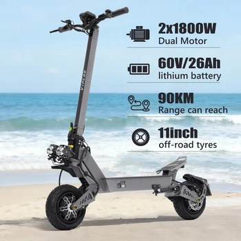 VIPCOO VS9 Original Popular 1800W*2 60V 26Ah 11inch Big Wheel Off Road Electric Scooter US EU UK Warehouse